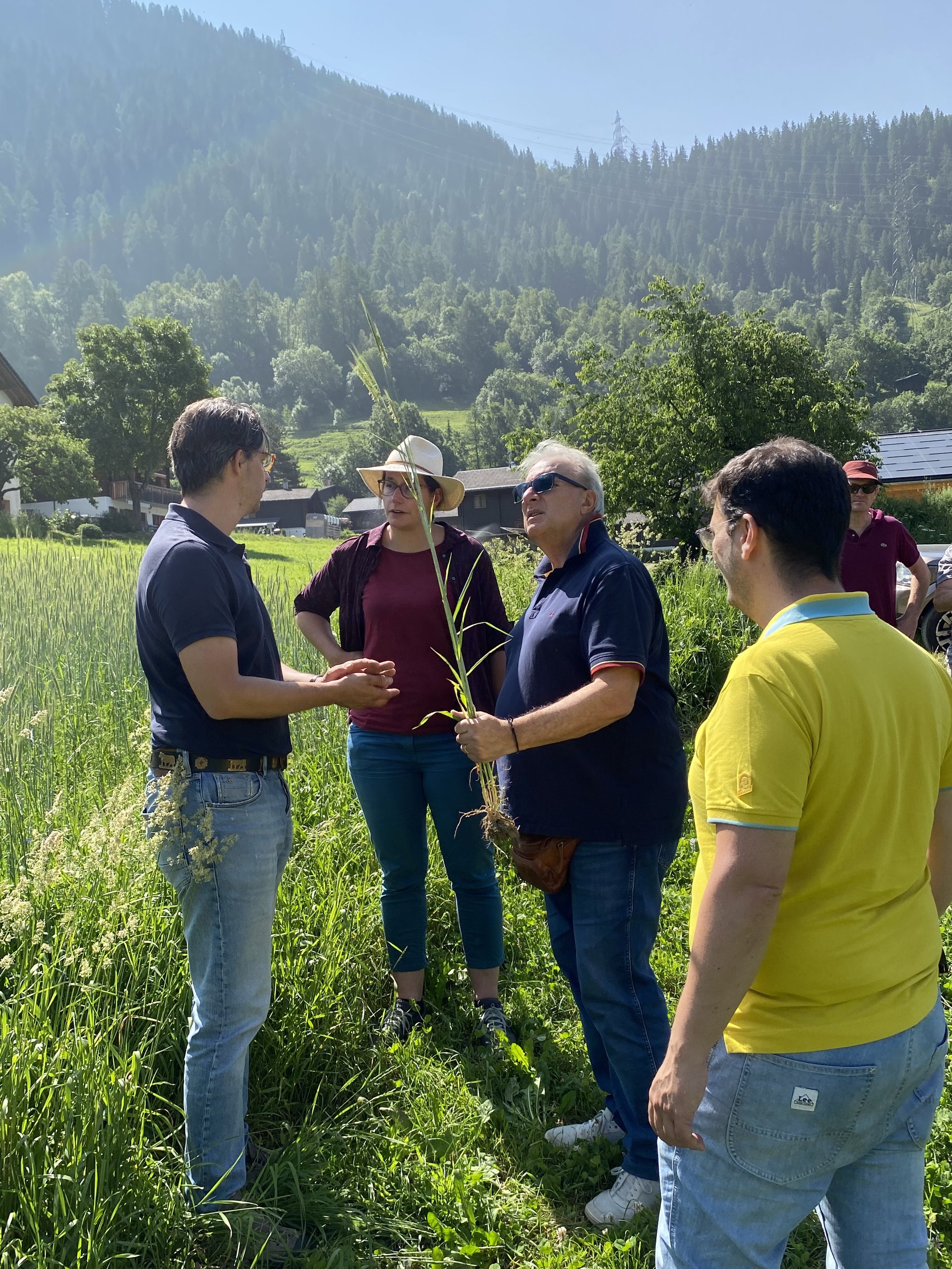 Anlässlich des Projektmeetings Interreg CereAlp von 11. Juni - 13. Juni 2025 fand am Donnerstag, 12. Juni 2025 ein Exkursionstag im Oberwallis statt. Der Tag führte die Projektpartner auf eine Tour durch verschiedene Anbau- und Versuchsfelder im Wallis sowie zum offiziellen Interreg CereAlp Austausch nach Leuk. Ziel des Projekttreffens war es, technische und organisatorische Weichen für die nächste Phase des CereAlp Projekts zu stellen.