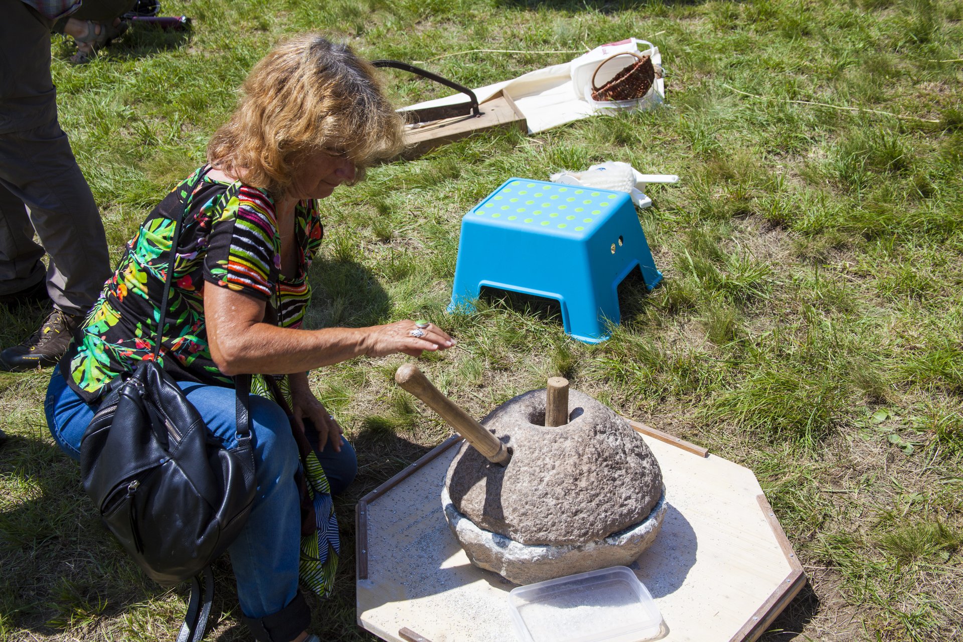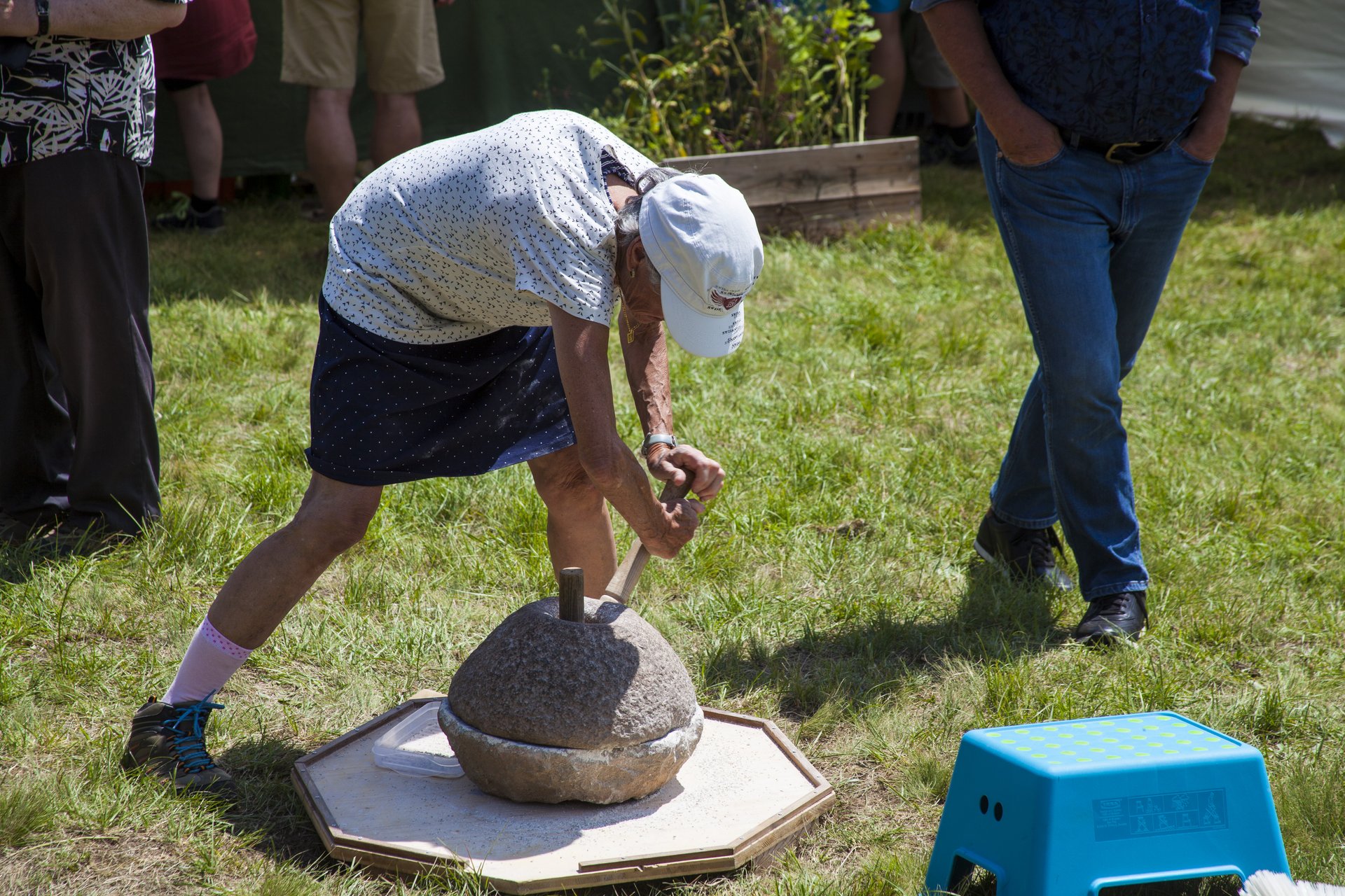 Wie man aus steinhartem Roggenbrot mundgerechte Stücke macht, erfuhren Jung und Alt am Stand, der den Weg vom Korn zum Brot erlebbar machte. Mit einer alten Steinmühle Mehl herstellen oder selber probieren, ob einem für das Korndreschen der Dreschflegel oder einem Nitschär besser liegt – Handarbeit war gefragt!