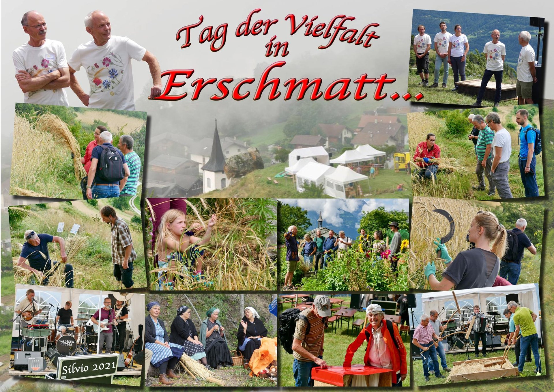 «Wer die Vielfalt sucht, sollte sich den letzten Julitag 2021 für den «Tag der Vielfalt» beim Hugostein in Erschmatt vormerken.» So kündigten wir im Frühjahr diesen Anlass an. Und über 150 Besucherinnen und Besucher fühlten sich von unserem Programm angesprochen. Sie konnten die Vielfalt auf ganz unterschiedliche Weisen kennenlernen und erfahren. Wie die Stimmung am Festplatz selber und die positiven Echos und Rückmeldungen danach zeigen, hat es den Gästen sehr gefallen. Die nachfolgenden Zeilen, Fotos und Videos vermitteln ein Stimmungsbild über die diesen Tag – ein Meilenstein für den organisierenden Verein Erlebniswelt Roggen Erschmatt mit dem Sortengarten!