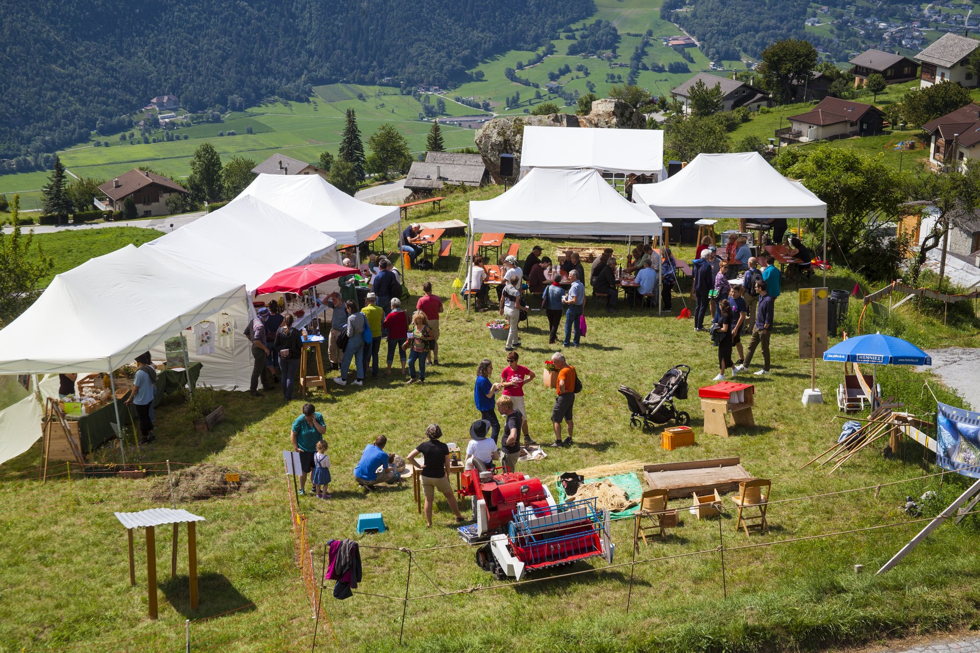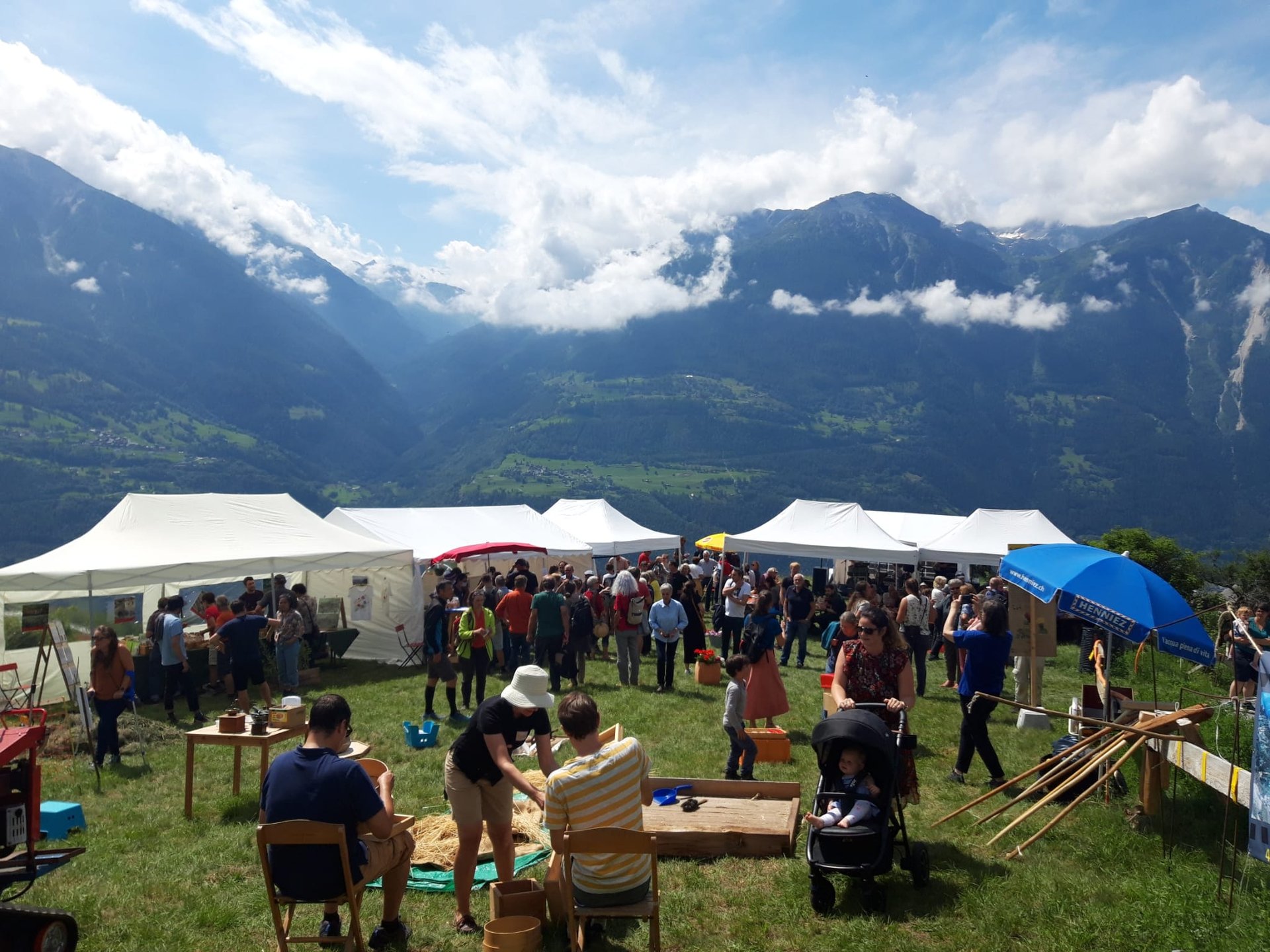 Was gab es zu feiern? Was war der Anlass zu diesem Tag? Vor 36 Jahren, im Jahre 1985 hat Roni Vonmoos in der Zälg, in den Ackerterrassen bei Erschmatt seine ersten Getreidesamen gesetzt. Langfristiges Ziel war es damals, den verschiedenen alten Walliser Kulturpflanzen und ihrer Begleitflora eine Heimat zu geben, weil sie sonst zu verschwinden drohten. Mittlerweile sind im Sortengarten über 1000 verschiedene Sorten erfasst und dokumentiert. Roni Vonmoos übergibt dieses Jahr sein Lebenwerk an drei junge und kompetente Fachkräfte. Der Tag der Vielfalt markiert gewissermassen den symbolischen Akt dieser Stabsübergabe.