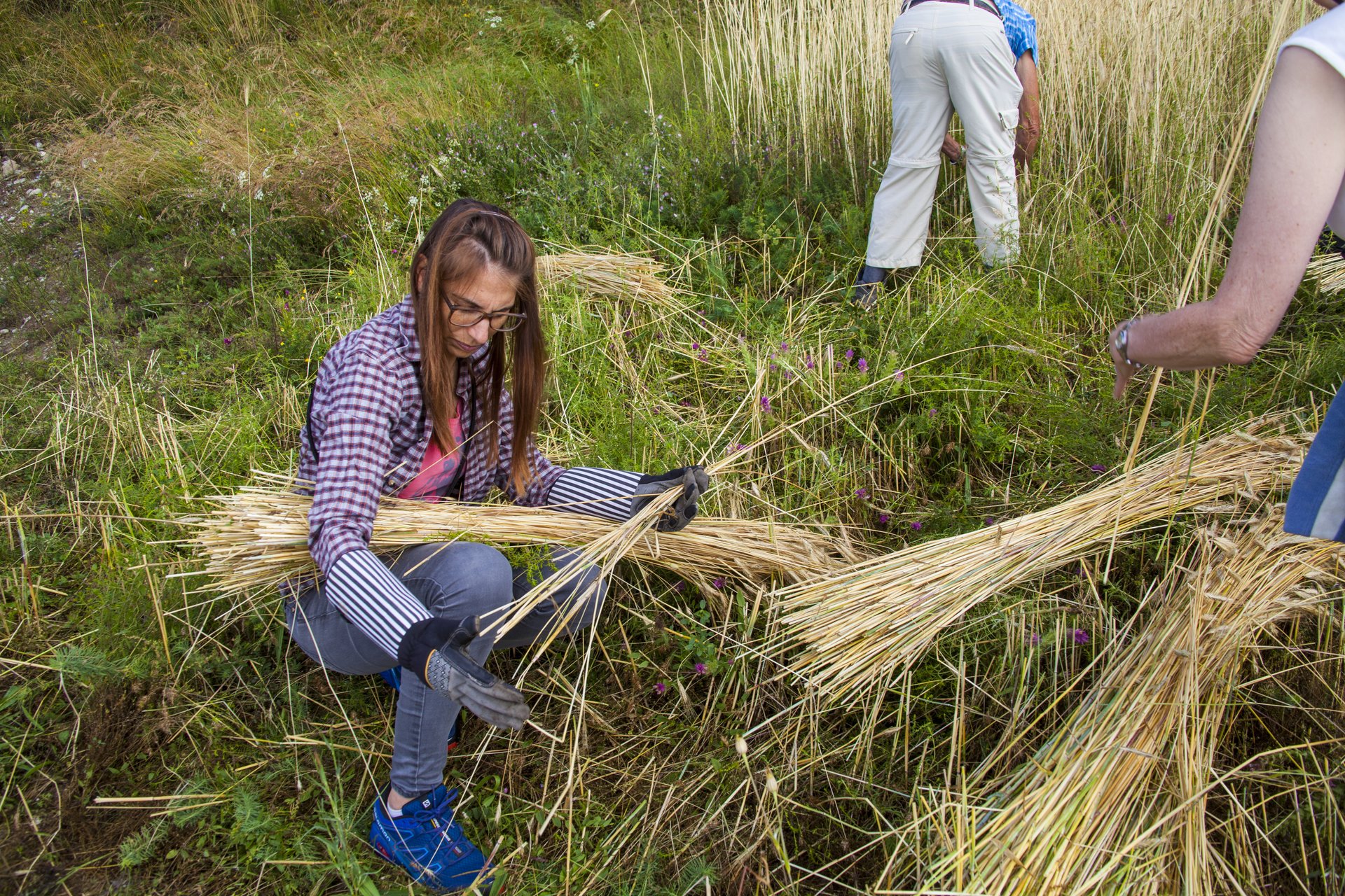Den goldgelben Roggen im Feld mit der Sichel schneiden und zu Garben (im Dialekt «Goofen») binden – diese traditionelle Art der Roggenernte konnte man selber unter Anleitung ausprobieren. Offenbar machte das Schneiden und Binden vielen Spass. In das Schutzgebiet Zälg der Pro Natura führte uns Marjorie Berthouzoz, kombiniert mit Walliser Sagen des Boozu-Teams Agarn. Dank dieser Erzählungen weiss man endlich, was genau mit dem Hugostein passiert und wie die Walliser Hartköpf der Trockenheit trotzten...