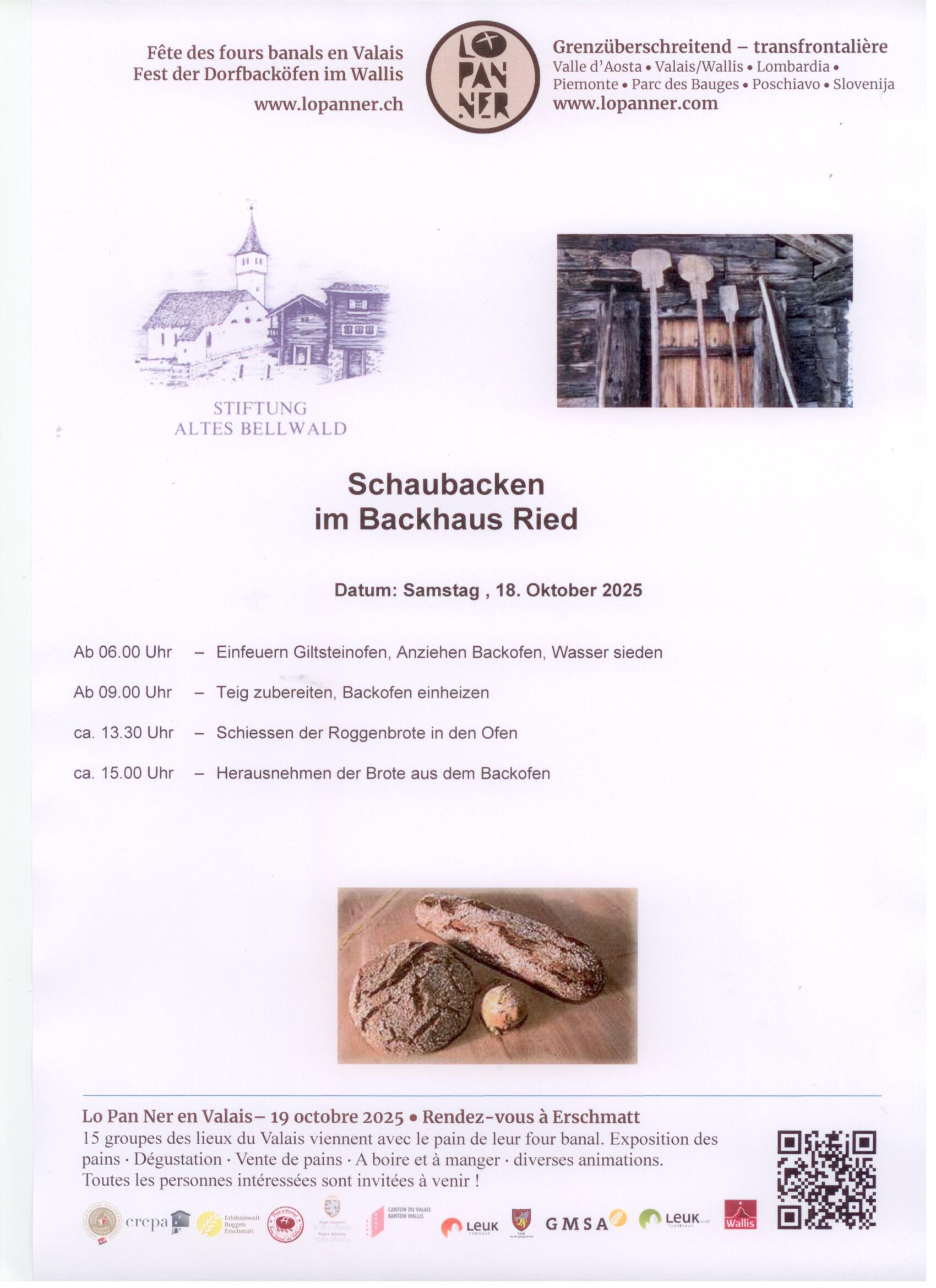 Le 18 octobre, 15 fours villageois du Valais cuisent du pain selon la tradition locale. Les visiteurs peuvent assister à la fabrication du pain et en acheter. Selon les lieux, un programme d'activités avec cantine et autres offres est proposé.